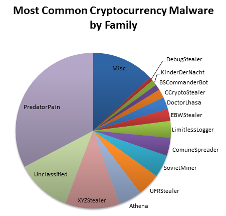 Figure 3 shows the overall ratio of samples belonging to each malware family. A few malware families seem to be in widespread distribution, while others may have only one or two variants. The "Unclassified" group represents cryptocurrency malware that CTU researchers have not classified as of this publication. The "Miscellaneous" group includes the cryptocurrency malware families the CTU research team has discovered that would not fit into the chart.