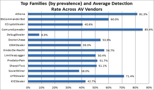 Figure 4. Top CCSM families and their detection rate across AV vendors as of February 20, 2014. (Source: Dell SecureWorks)