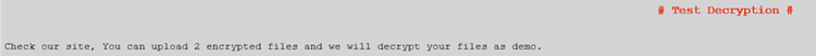 Figure 1. Test decryption offer in GOLD LOWELL ransom note. (Source: Secureworks)
