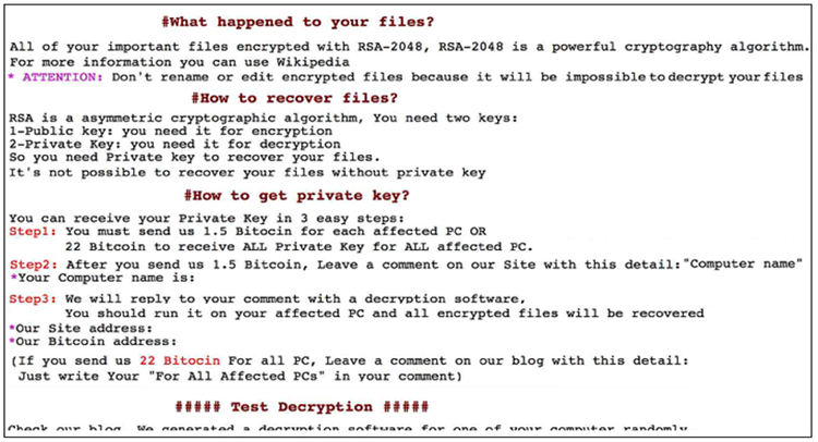 Figure 8. GOLD LOWELL ransom note used in 2015-2016. (Source: Secureworks)