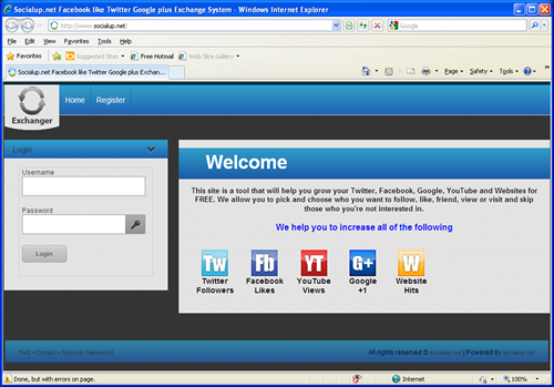 The same type of open-source intelligence can be used to gather information about the [email protected] actor. One domain registered by [email protected] is "socialup.net". This site describes a "like exchange," which is a service that Internet marketers can use to promote a story on social media sites like Digg or Reddit.