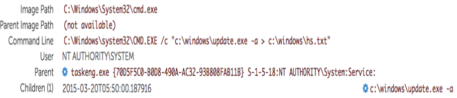 Figure 1. Scheduled Task created via at.exe. (Source: SecureWorks)